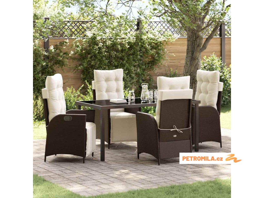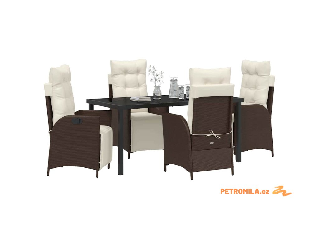 Zahradní jídelní souprava 5 pcs Hnědá Poly ratan