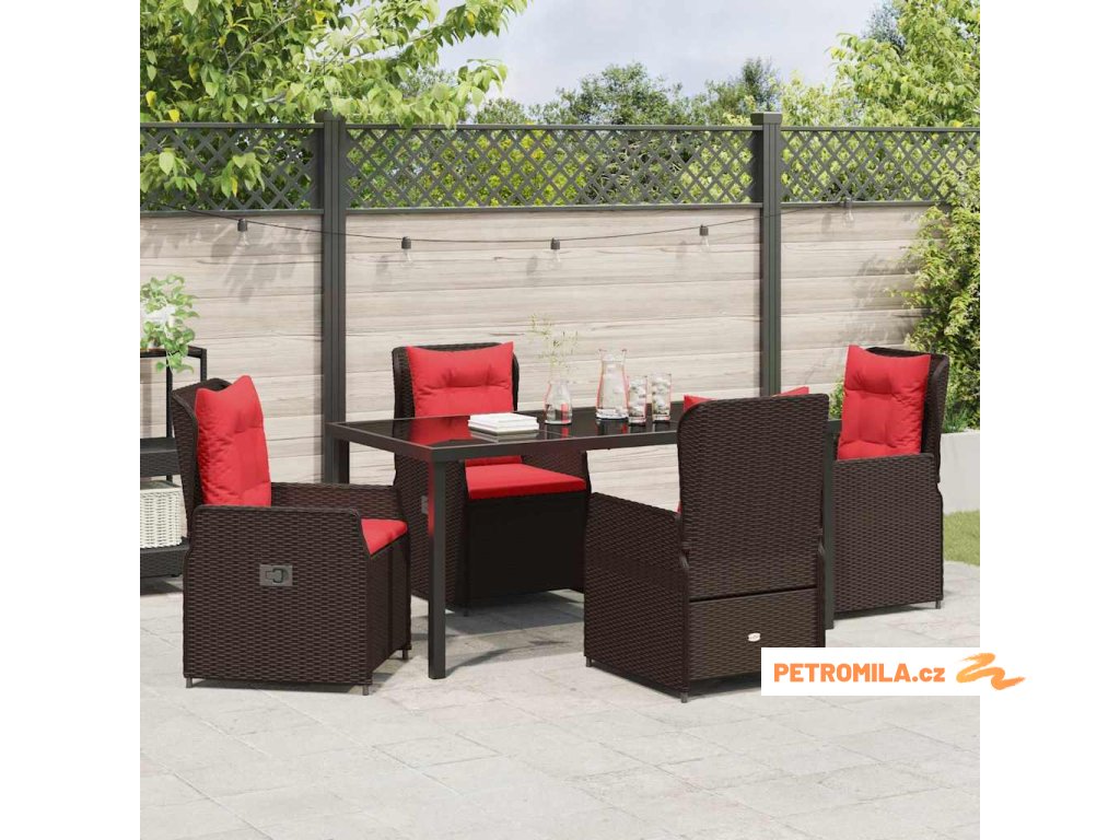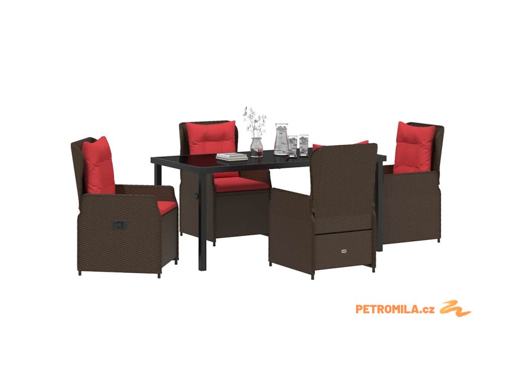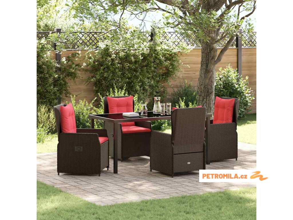 Zahradní jídelní souprava 5 pcs Hnědá Poly ratan