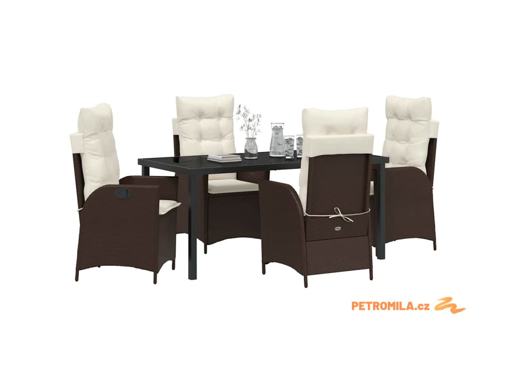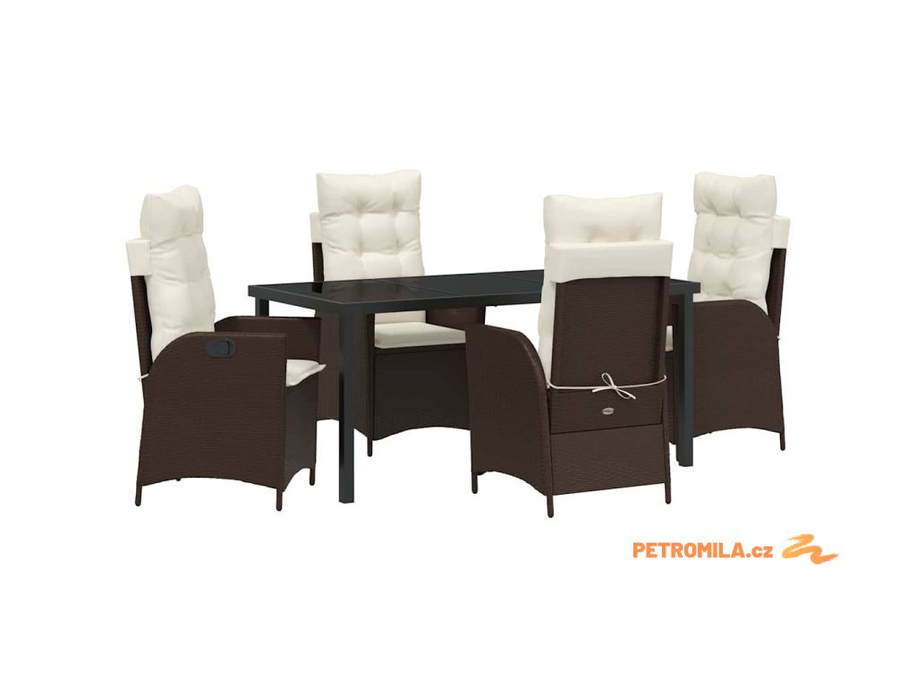 Zahradní jídelní souprava 5 pcs Hnědá polyratan