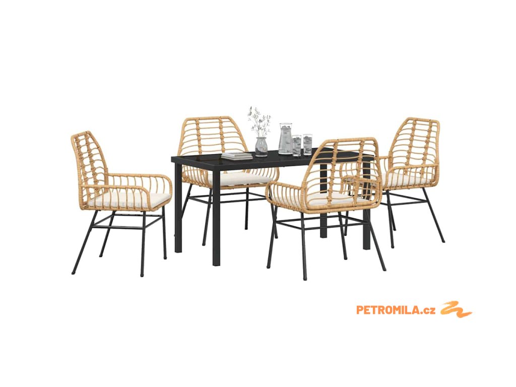 Zahradní jídelní souprava 5 pcs Hnědá polyratan