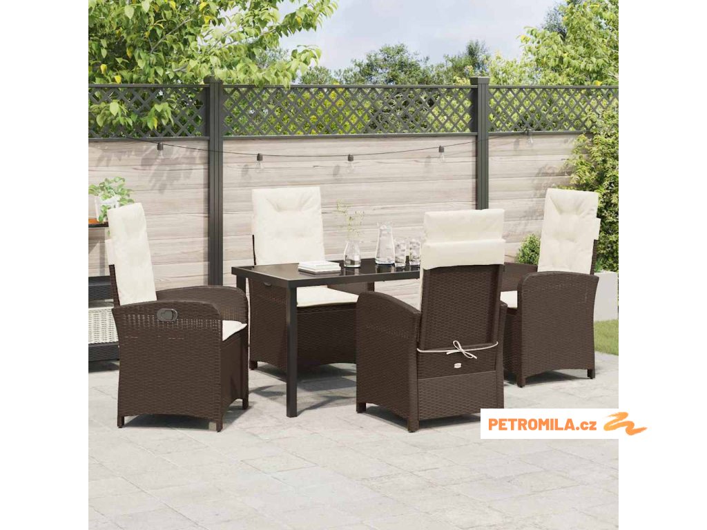 Zahradní jídelní souprava 5 pcs Hnědá polyratan