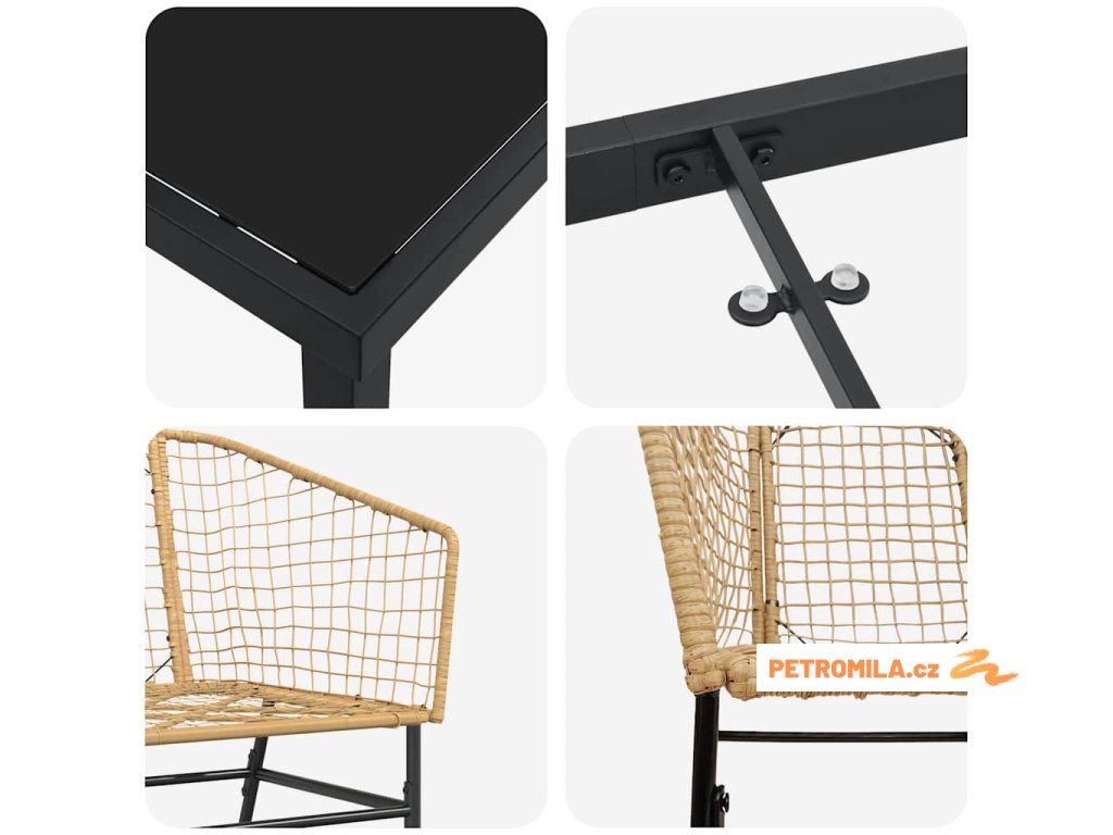 - Materiál a konstrukce: Vyrobená z polyratanu, tahle souprava vydrží a zvládá všechno počasí, takže je ideální na ven. Její elegantní povrch je moderní a navíc se snadno čistí, takže ji můžeš používat celé léto.