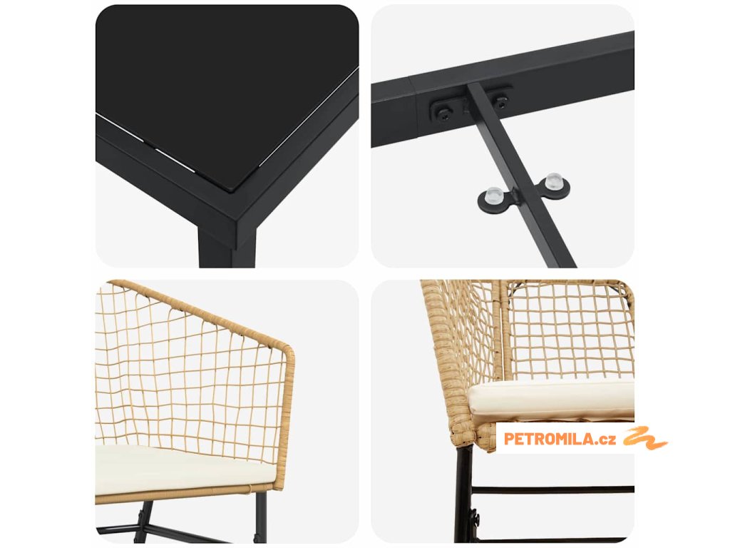 - Materiál a konstrukce: Vyrobená z polyratanu, tahle souprava vydrží a zvládá všechno počasí, takže je ideální na ven. Její elegantní povrch je moderní a navíc se snadno čistí, takže ji můžeš používat celé léto.