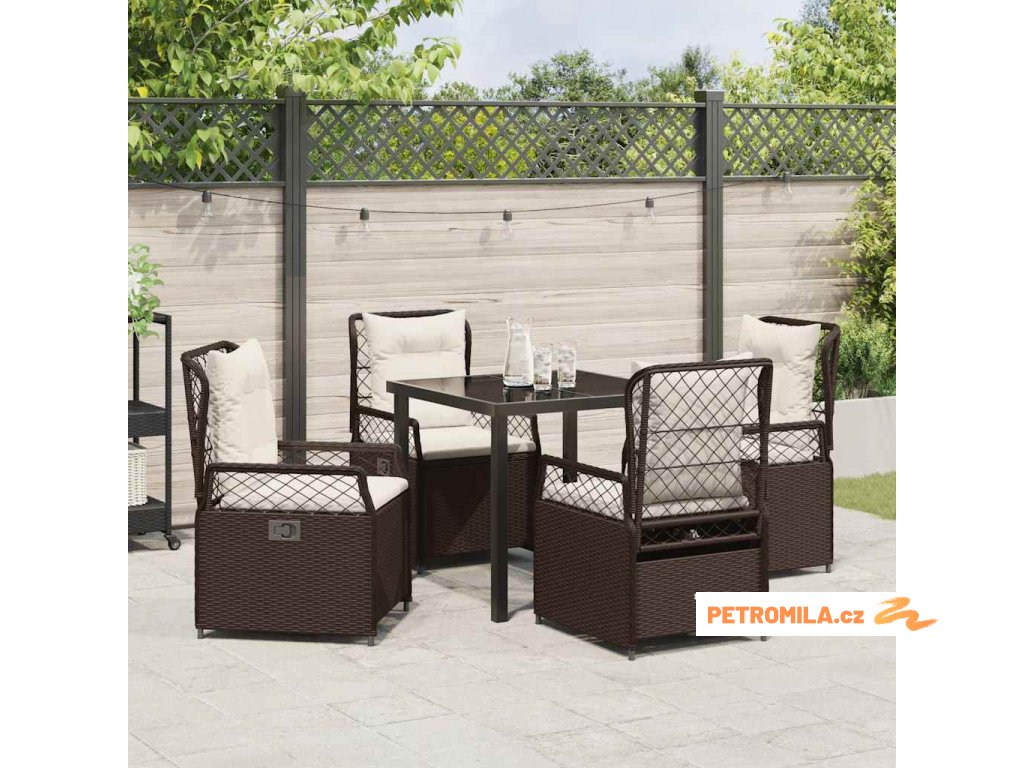 Zahradní jídelní souprava 5 pcs Hnědá polyratan