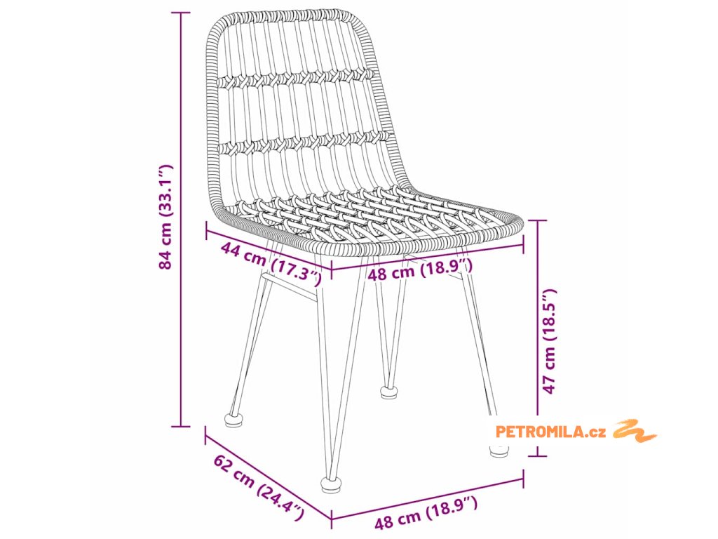 - 2 x Zahradní křeslo: 48 x 62 x 84 cm (D x Š x V)