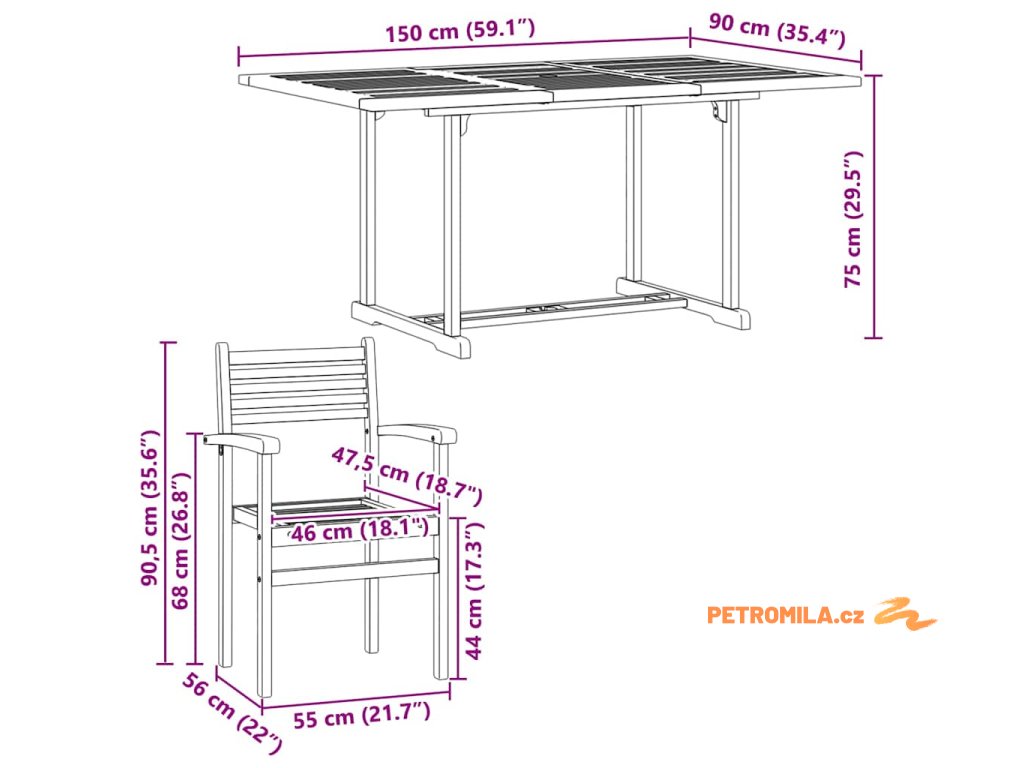 Masivní teaková konstrukce Vyrobena z kvalitního masivního teakového dřeva, tato jídelní sada nabízí nepřekonatelnou odolnost a přírodní krásu. Hustá struktura dřeva a přírodní oleje zajišťují vynikající odolnost proti povětrnostním vlivům, což zajišťuje, že vaše investice vydrží sezóny. Její bohatá textura a barva se časem prohlubují, přidávají charakter a teplo vašemu venkovnímu prostoru.,Odolný venkovní design Navržena výhradně pro venkovní použití, tato sada obsahuje komponenty speciálně ošetřené tak, aby odolaly vlivu prvků. Ať už prší nebo svítí slunce, přirozené vlastnosti teakového dřeva zajišťují odolnost proti vlhkosti a ochranu proti UV záření, díky čemuž je ideálním doplňkem do jakékoli zahrady nebo terasy.,Prostorná jídelní plocha S rozměry 150 x 90 x 75 cm poskytuje jídelní stůl dostatek prostoru pro večeře, brunch nebo neformální setkání. Jeho široký povrch pojme různé jídelní příslušenství, zatímco ergonomická výška podporuje pohodlí a snadnost během jídla. Tento prostorný design vybízí k přátelskosti a otevřené atmosféře pro hosty.,Přirozená elegance Zakončení designu zadní části sady představuje jemný a reprezentativní vzhled, který zvyšuje estetickou přitažlivost vašeho venkovního jídelního prostoru. Complementuje přírodní krajinu, dokonale zapadá do zahrad se svými zemitými hnědými tóny a minimalistickým designem.,Promyšlená údržba Dodržujte jednoduché pokyny pro péči použitím ochranného krytu během drsných podmínek k ochraně dřeva a udržení jeho kvality. Pravidelné čištění vhodnými venkovními metodami, jako jsou neabrazivní hadříky, zajišťuje čistý stav sady, prodlužuje její životnost a krásu.- Barva: Přirozené
