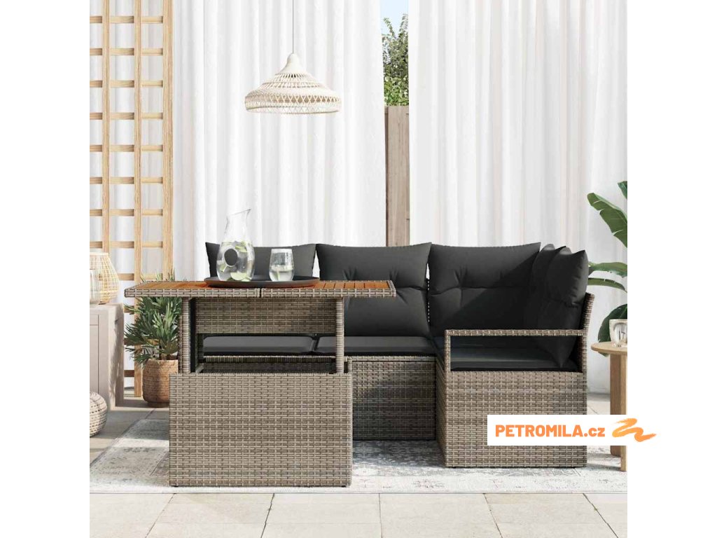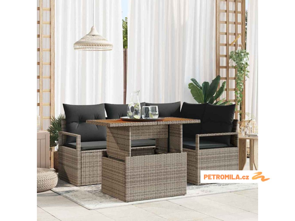 - Materiál: Polyratan, ocel a masivní akáciové dřevo