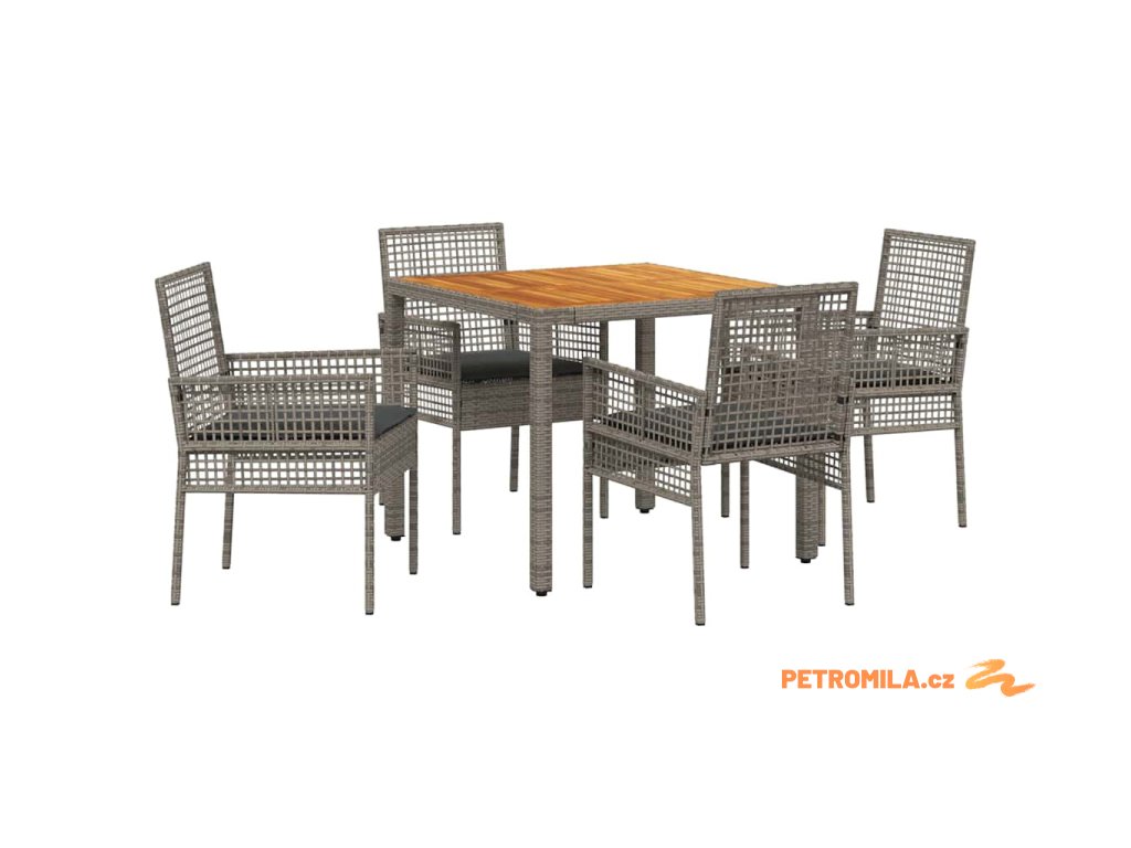 Zahradní jídelní souprava 5 pcs Šedá Poly ratan