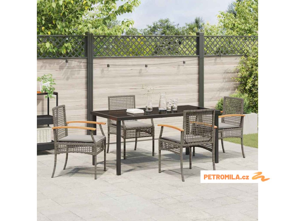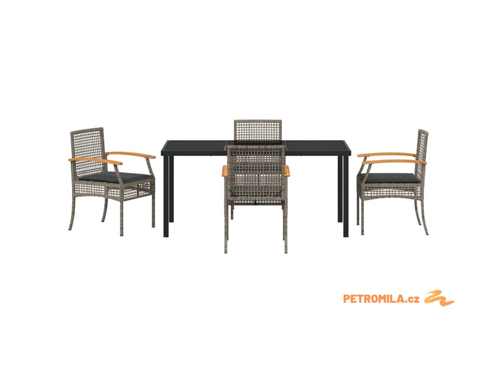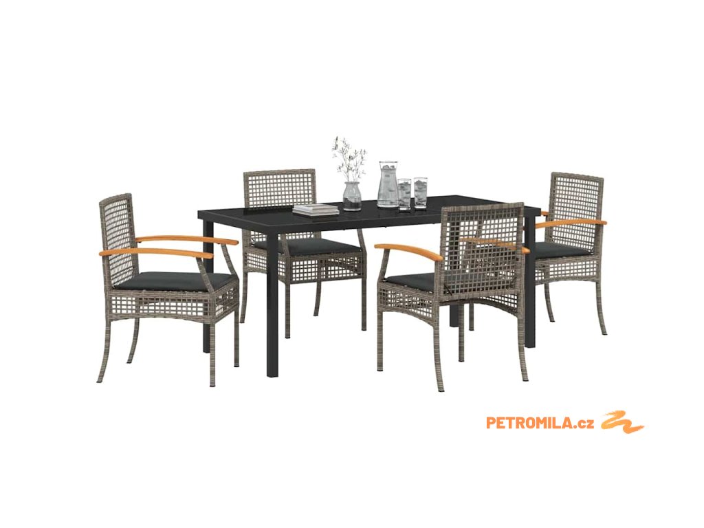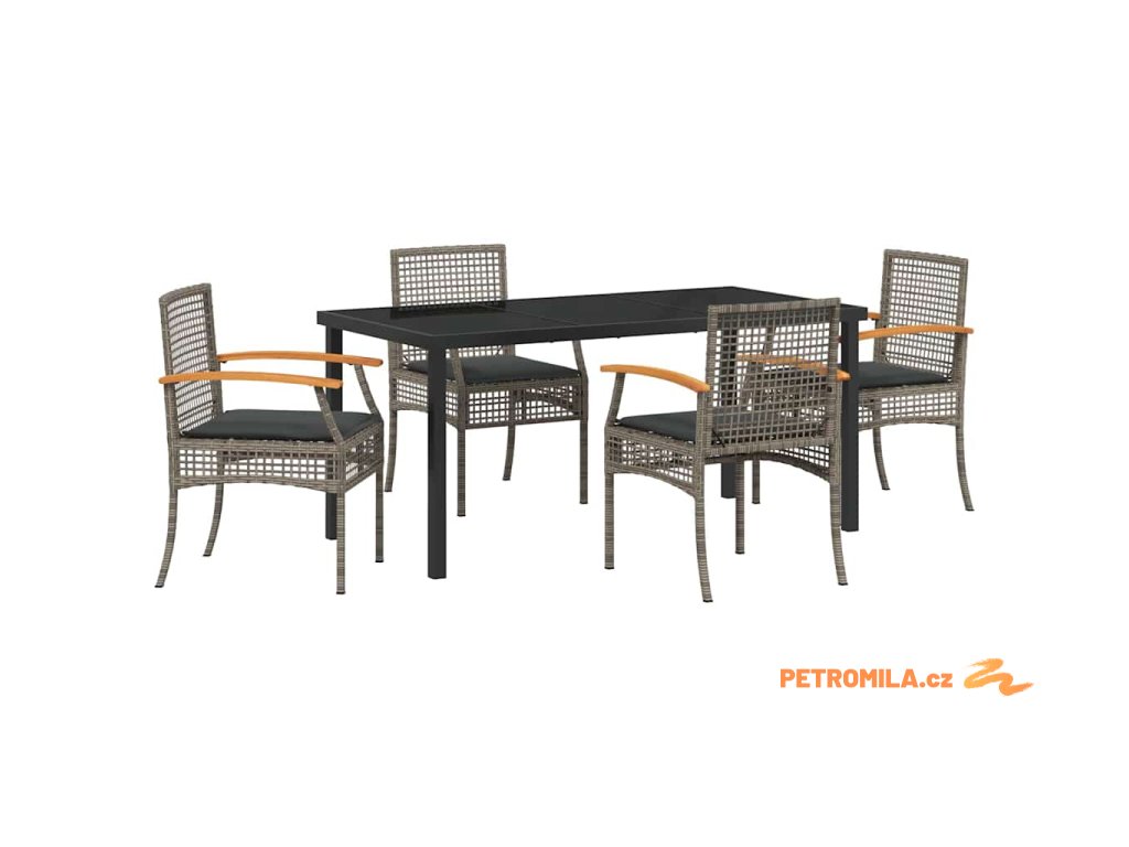 Zahradní jídelní souprava 5 pcs Šedá polyratan