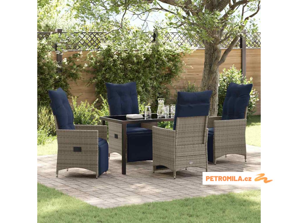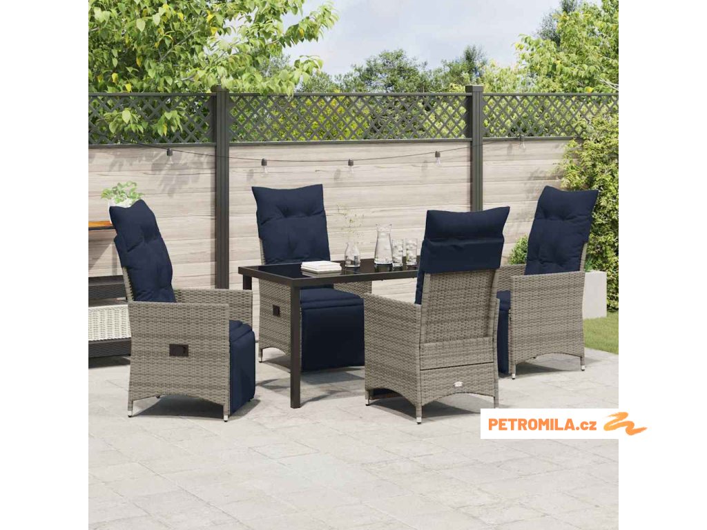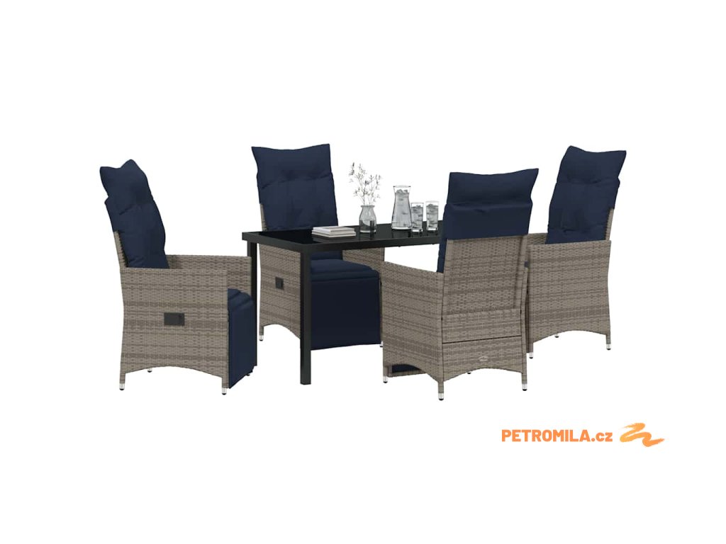 Zahradní jídelní souprava 5 pcs Šedá polyratan