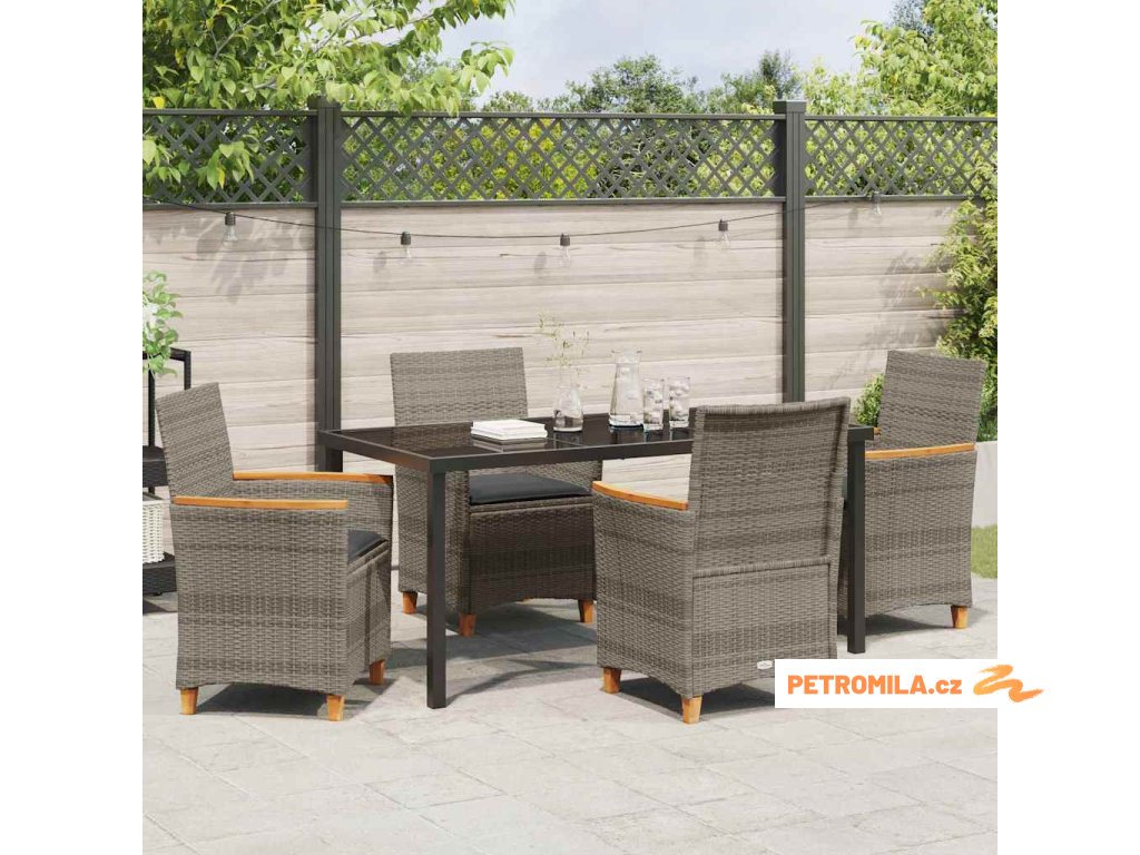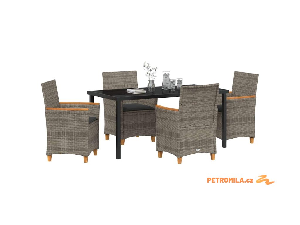 Zahradní jídelní souprava 5 pcs Šedá polyratan