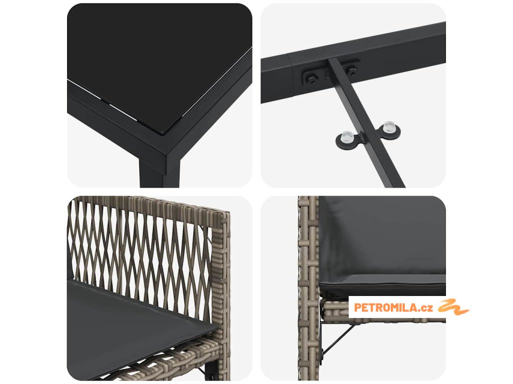 - Složení materiálu: Tento zahradní set je vyrobený z trvanlivého polyratanu a oceli, které zaručují jeho atraktivní vzhled a odolnost. Polyratan dodává krásný tkaný povrch, zatímco ocelový rám zajišťuje stabilitu, takže se ani ve větru nezhroutí. Chytrý výběr materiálů je nejen hezký, ale i praktický.