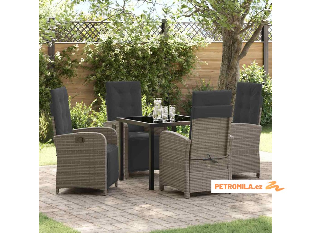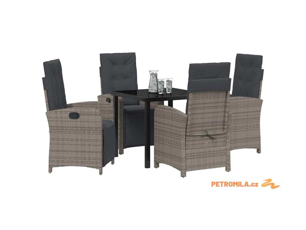 Zahradní jídelní souprava 5 pcs Šedá polyratan