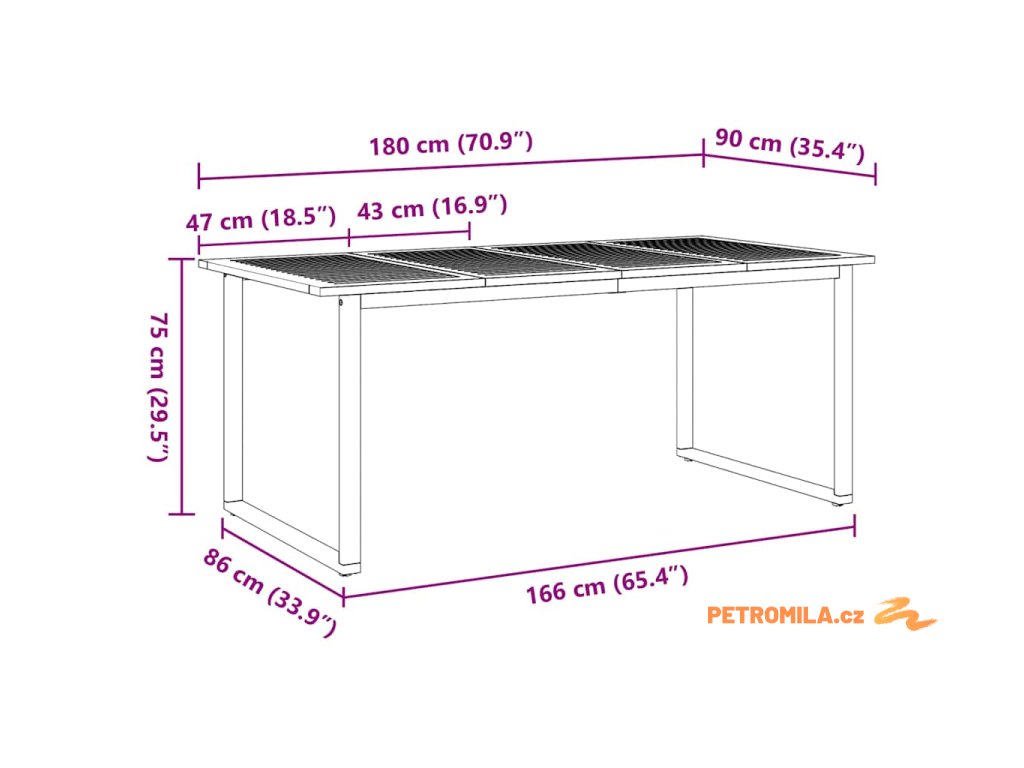 - Celkové rozměry: 180 x 90 x 75 cm (D x Š x V)