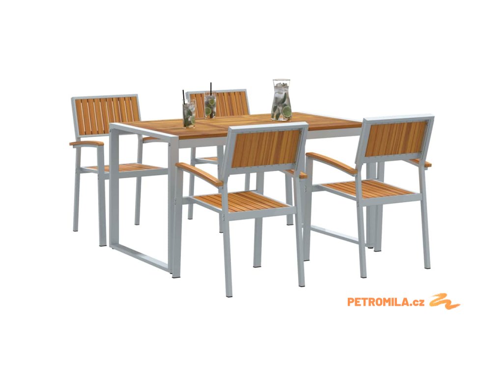 - Odolný design: Masivní akáciové dřevo a ocelový rám dělají z tohoto setu silnou a dlouhotrvající volbu. Tato kombinace dodává nejen sílu, ale i trochu rustikálního kouzla, která spojuje moderní styl a užitečnost. A materiály potřebují minimální údržbu, takže si užijete spoustu bezstarostných chvil.