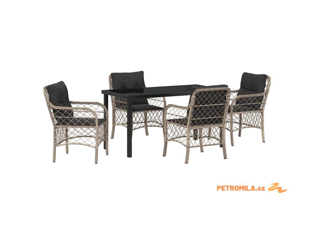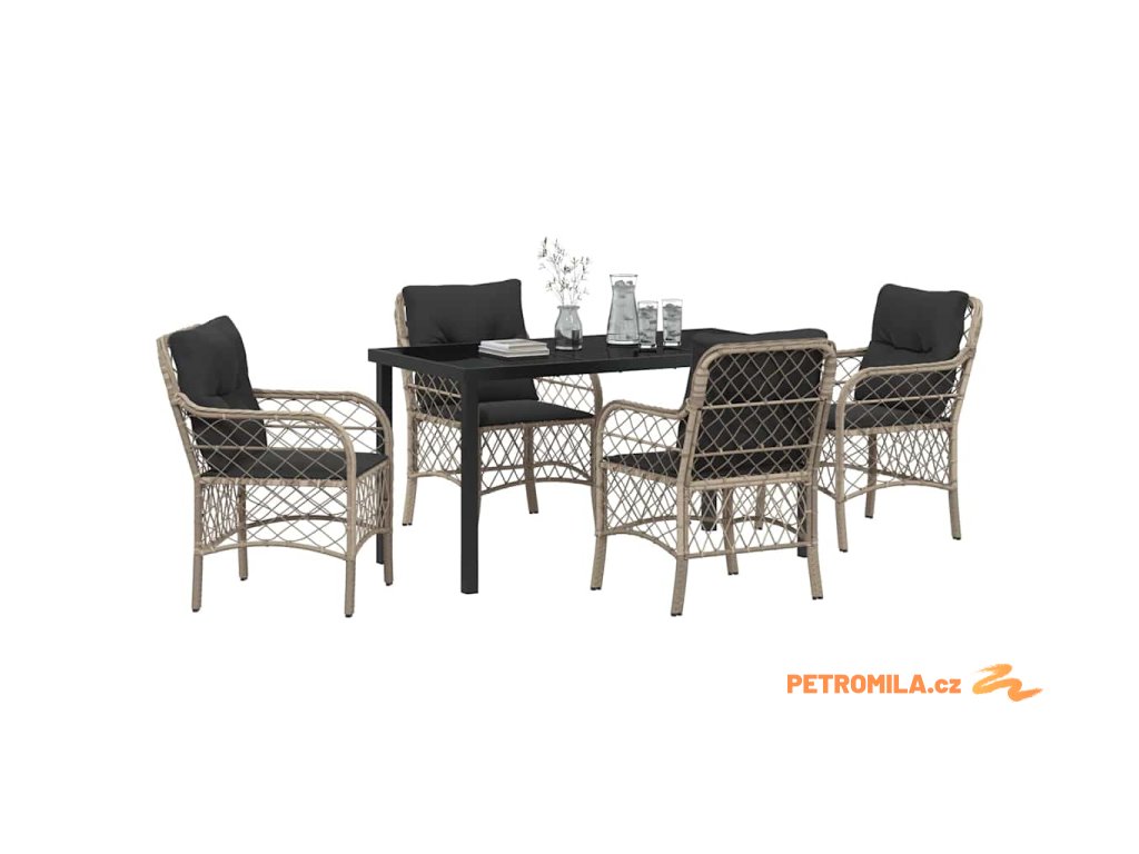 Zahradní jídelní souprava 5 pcs Světle šedá Poly ratan