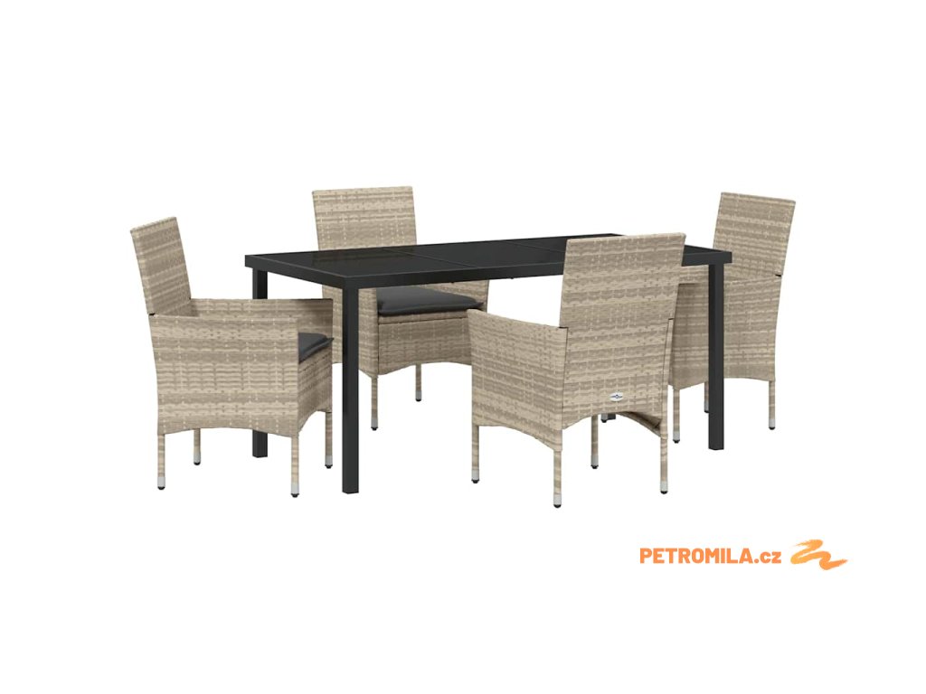 Zahradní jídelní souprava 5 pcs Světle šedá Poly ratan
