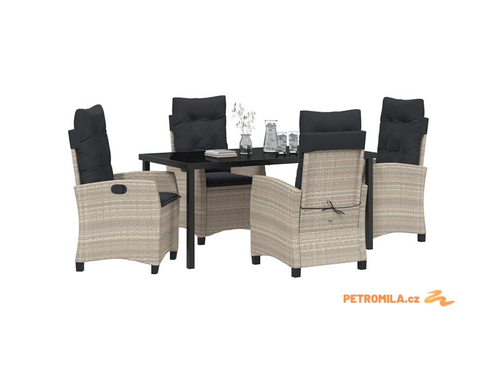 Zahradní jídelní souprava 5 pcs Světle šedá polyratan