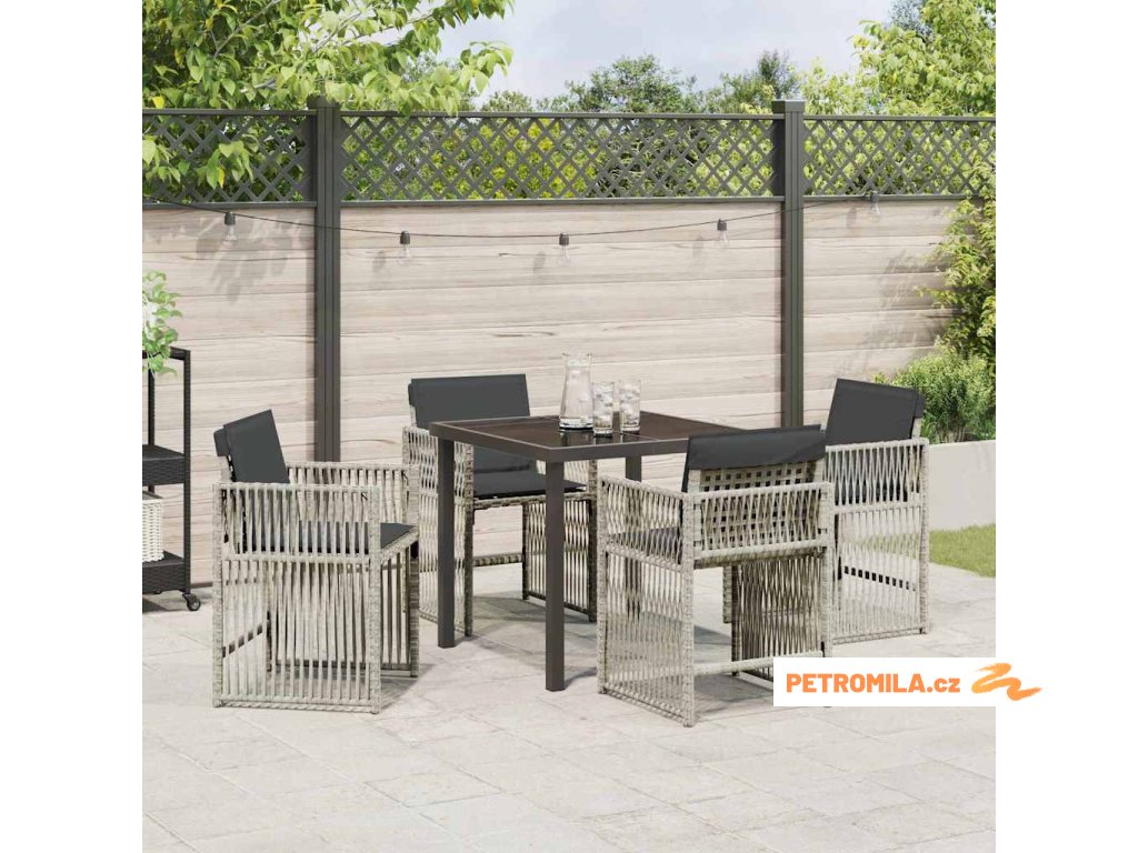 - Materiály: Tento moderní zahradní jídelní set je vyroben z práškově lakované oceli, což zajišťuje pevnost i odolnost vůči povětrnostním podmínkám. Tím se set stává dlouhotrvajícím centrem vašich venkovních prostor. Poly ratan na opěrkách navíc zvýrazňuje pohodlí a styl celého setu.