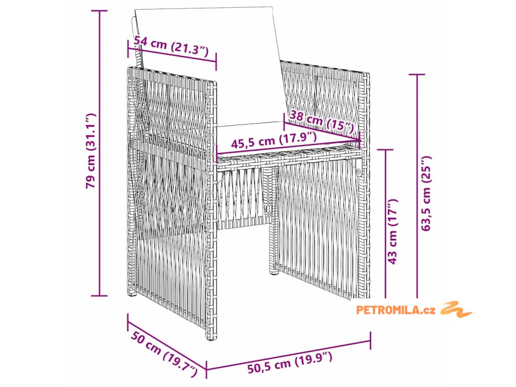 - 4 x Židle: 50.5 x 50 x 79 cm (DxŠxV)