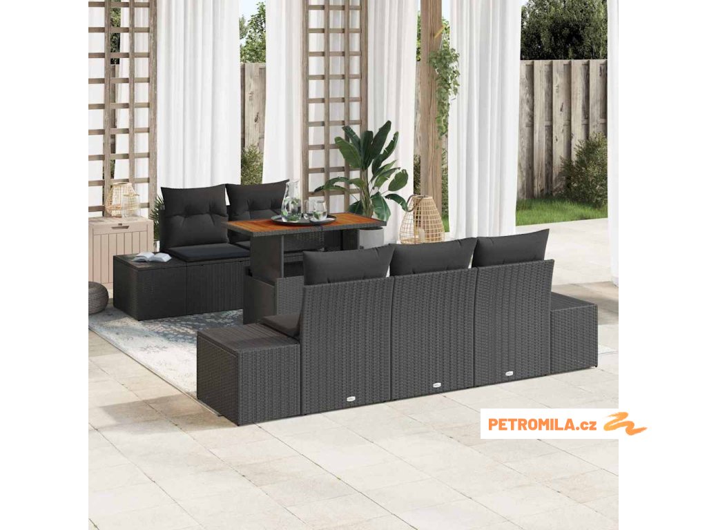 Zahradní jídelní souprava 6 pcs Černá a hnědá 100 x 55 x 73 cm