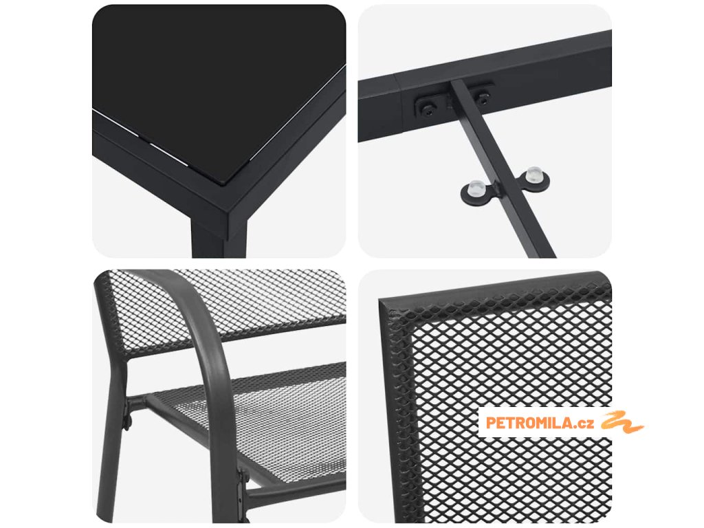 - Prémiové materiály: Konstrukce ze práškově lakované oceli zaručuje dlouhou životnost. S UV-odolnými vlastnostmi je tato robustní konstrukce stavěna tak, aby odolávala venkovním podmínkám a zároveň udržela svůj elegantní vzhled. Tvrzené sklo dodává šmrnc, poskytujíc spolehlivý a atraktivní stolovací povrch.