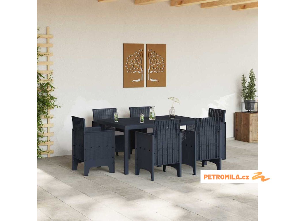 Zahradní jídelní souprava 7 pcs Antracit Ratan Polt