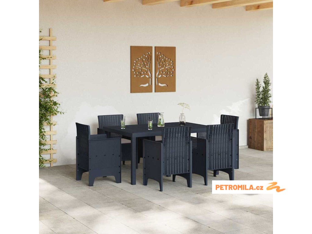 Zahradní jídelní souprava 7 pcs Antracit Ratan Polt