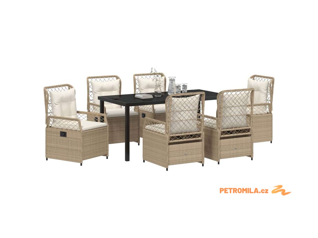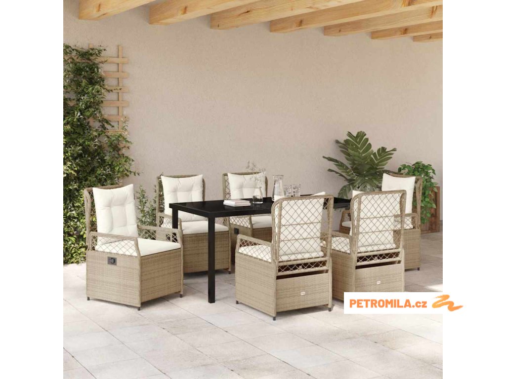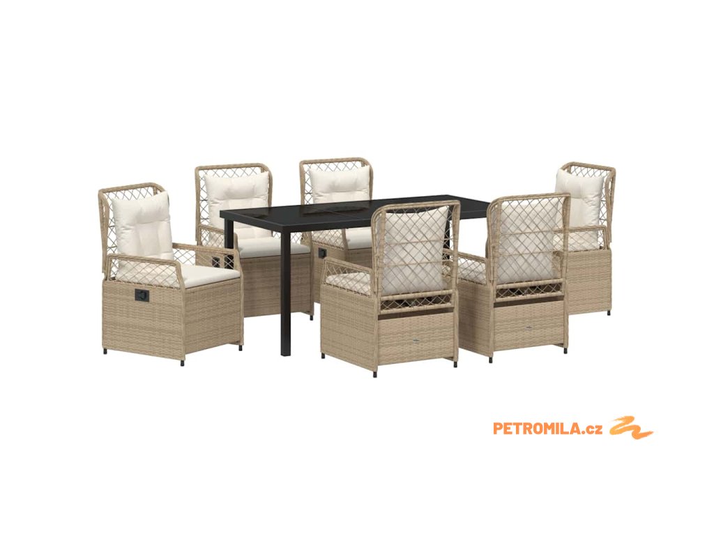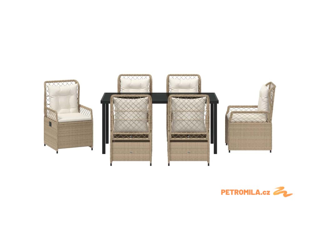 Zahradní jídelní souprava 7 pcs Beige a krémová bílá polyratan