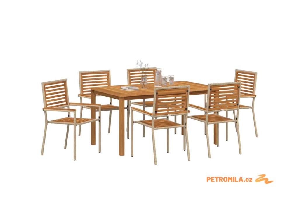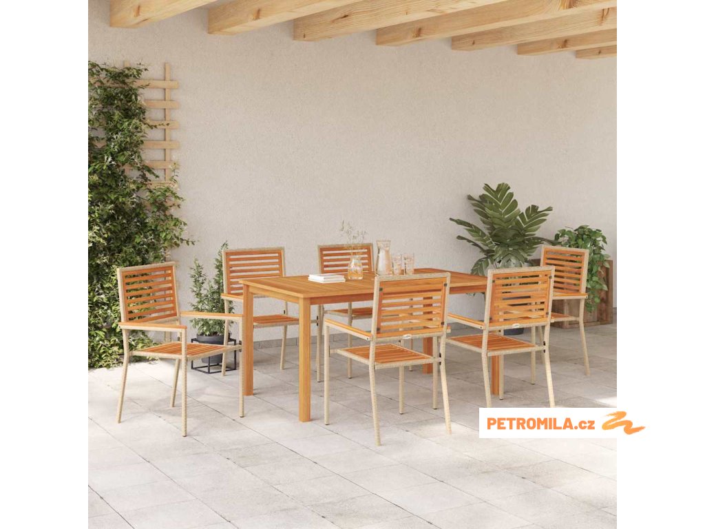 Zahradní jídelní souprava 7 pcs Béžová Masivní akátové dřevo