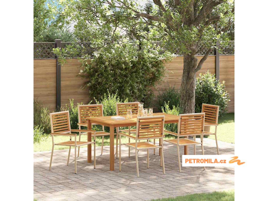 - Součásti: Set obsahuje židle s područkami a opěradlem z akáciového dřeva s hladkým povrchem pro pohodlné sezení. Tyto prvky zajišťují komfort i při delším sezení.