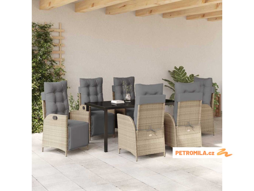 Zahradní jídelní souprava s polštářem 7 pcs Béžová Poly ratan