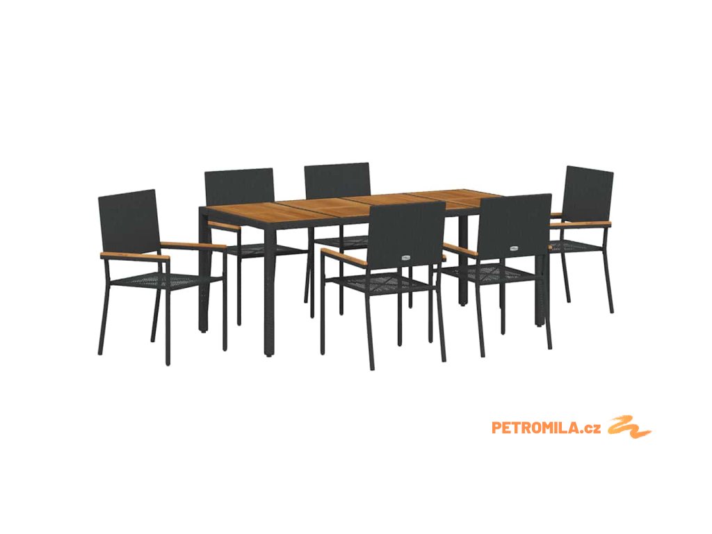 Zahradní jídelní souprava 7 pcs Černá 190 x 90 x 75 cm