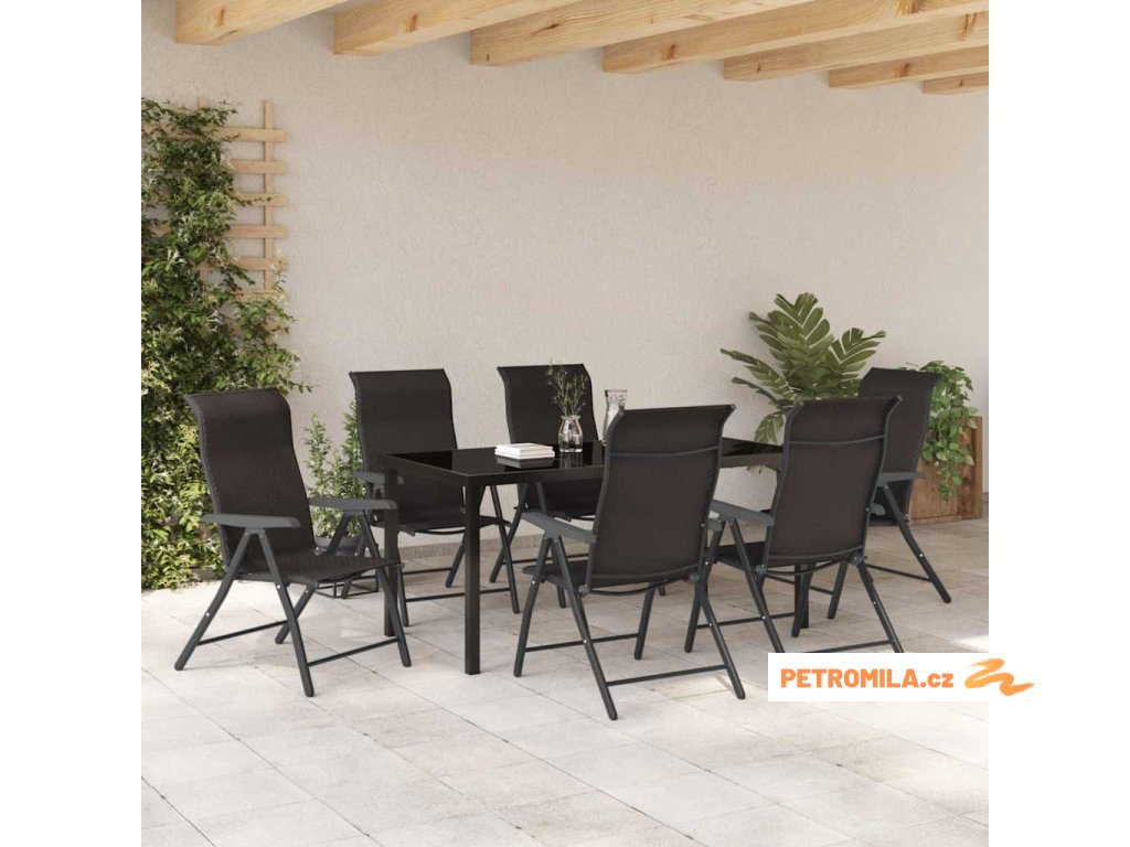 Zahradní jídelní souprava 7 pcs Černá káva