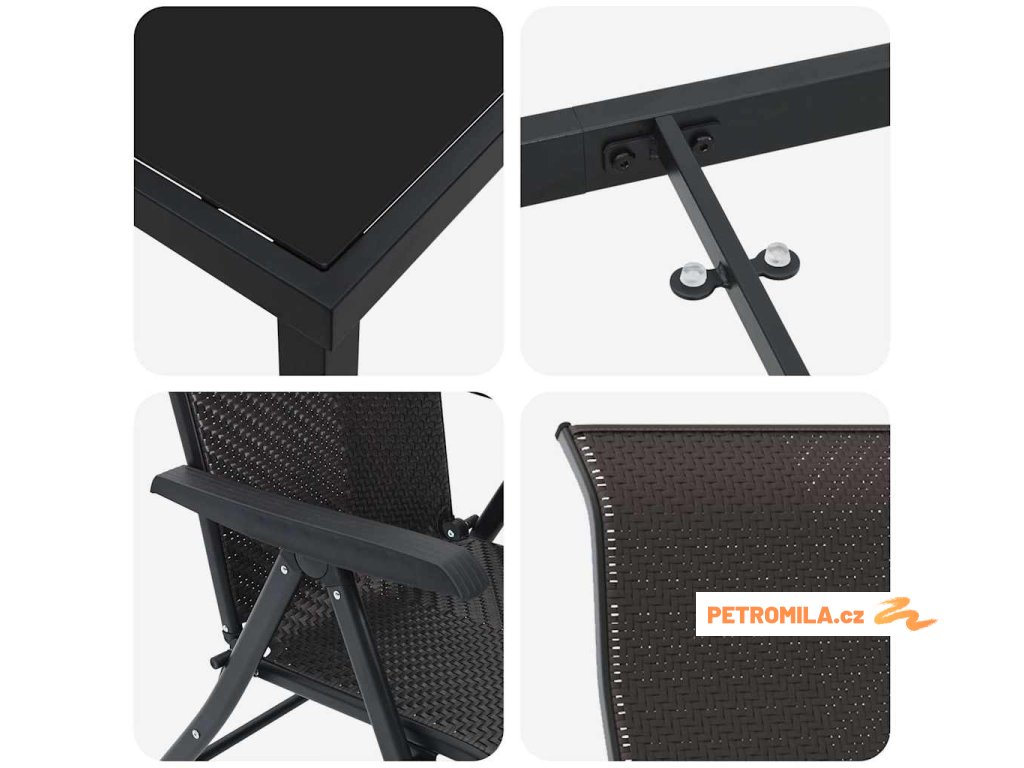 - Péče a údržba: Pro uchování vzhledu používejte kryt, když set není používán, obzvlášť při špatném počasí. Údržba je jednoduchá; stačí povrch otírat suchým hadříkem. Tyto jednoduché kroky zajistí, aby váš set zůstal elegantní a dlouho vám sloužil.