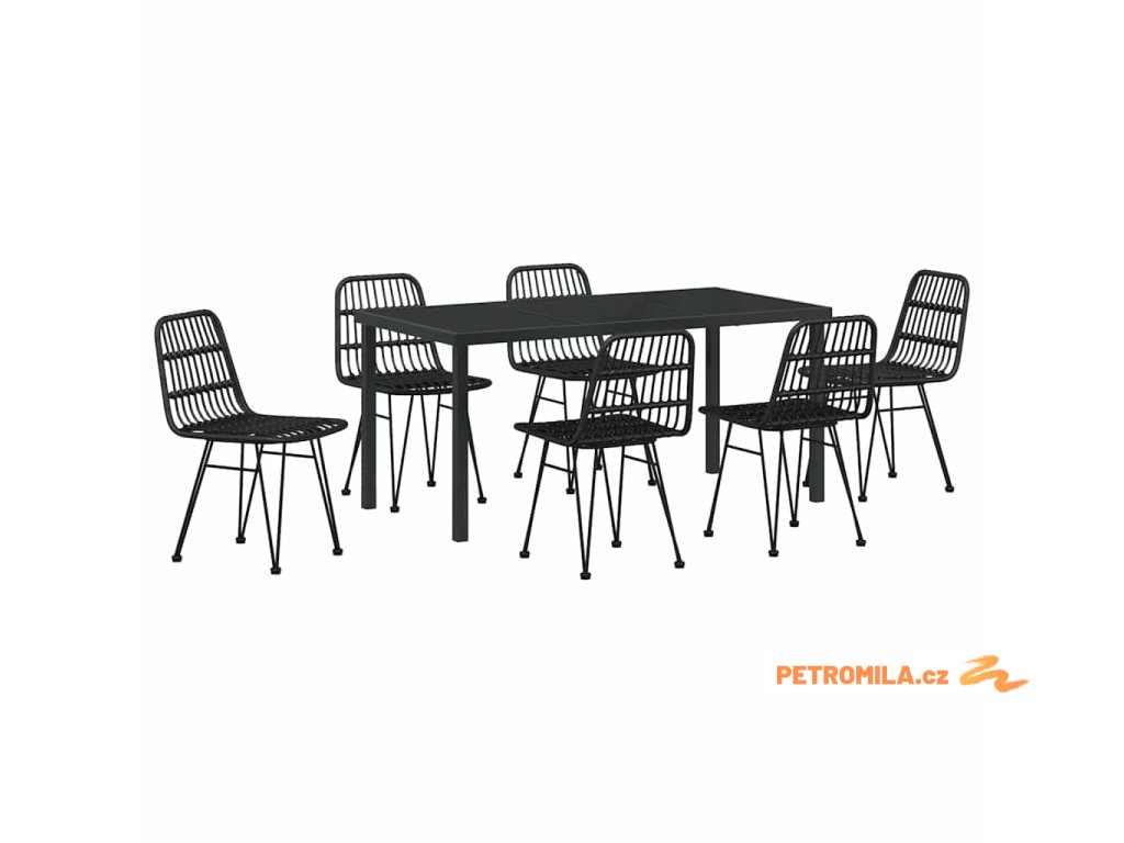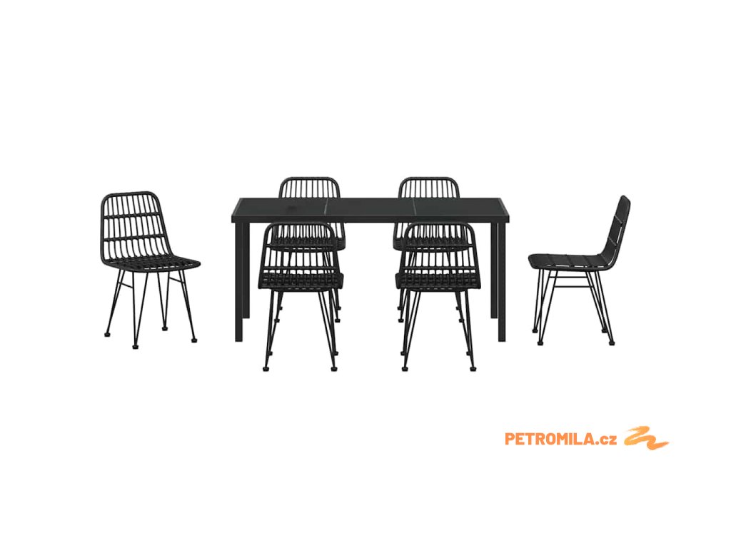 Zahradní jídelní souprava 7 pcs Černá Poly ratan