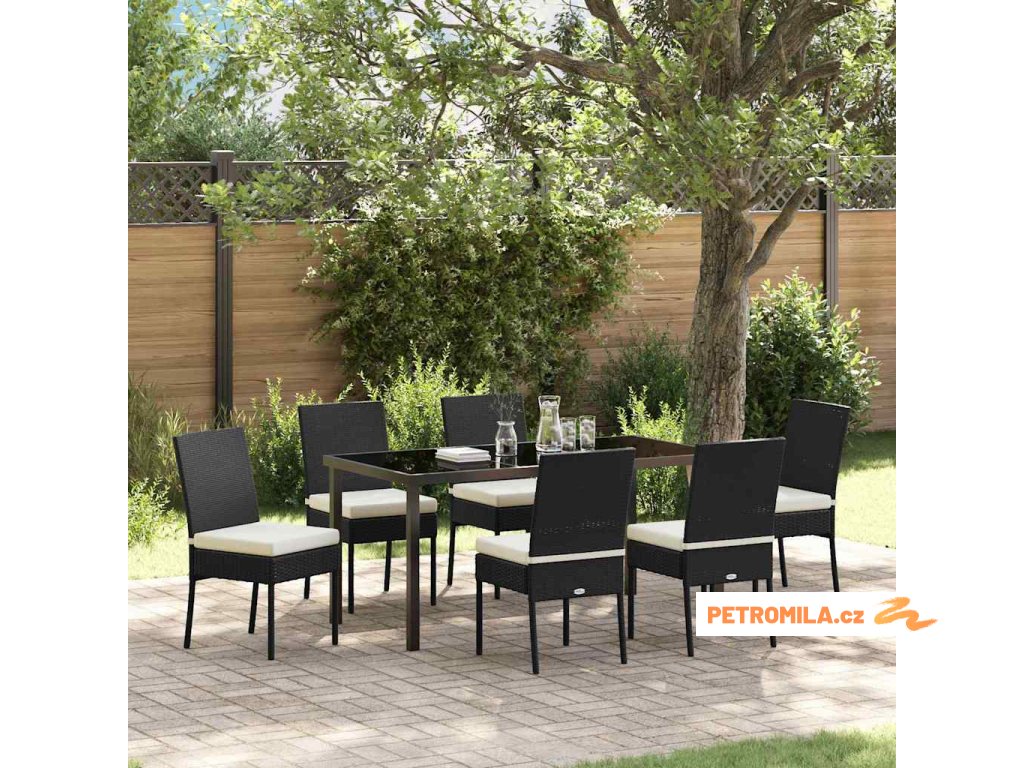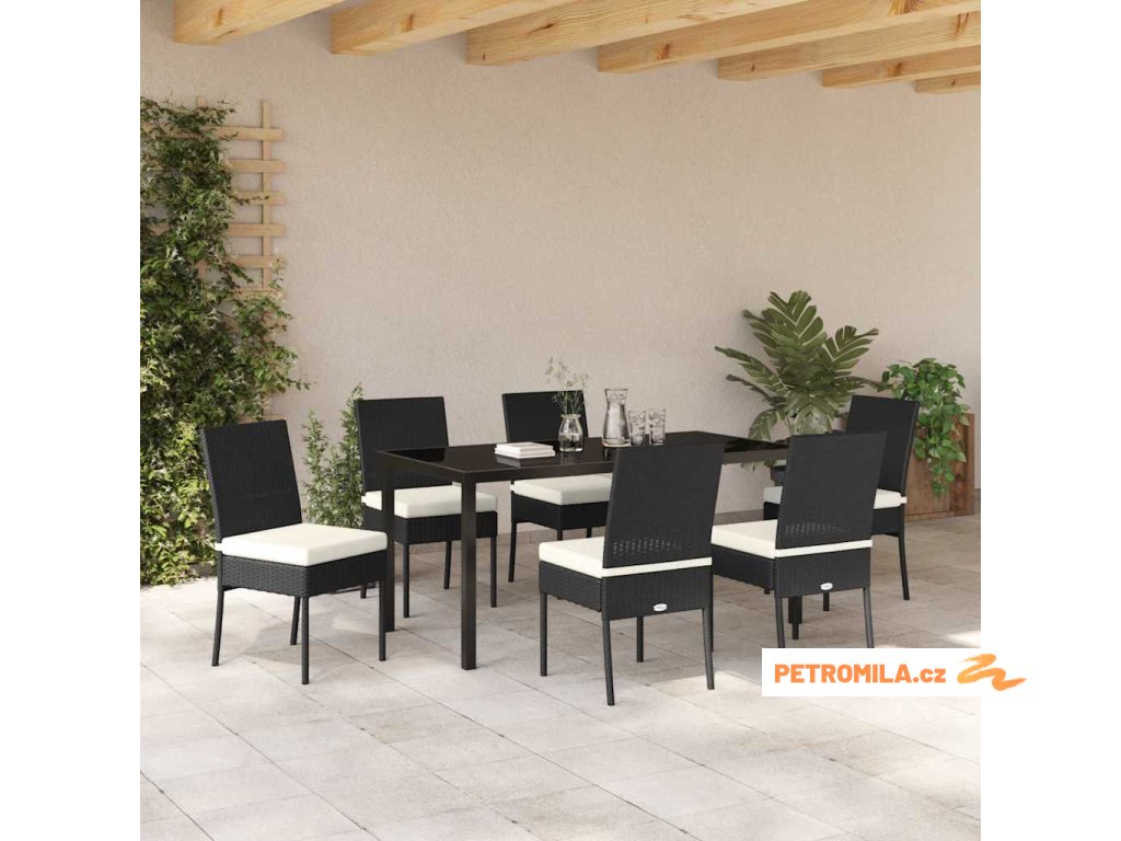 Zahradní jídelní souprava 7 pcs Černá Poly ratan