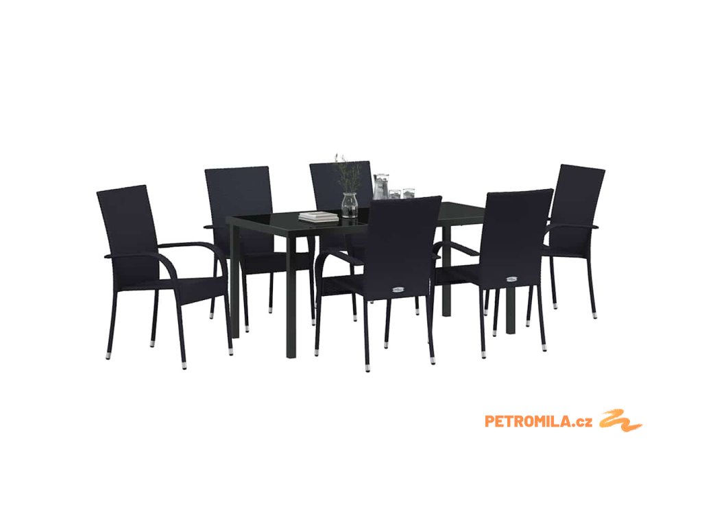 Zahradní jídelní souprava 7 pcs Černá Poly ratan