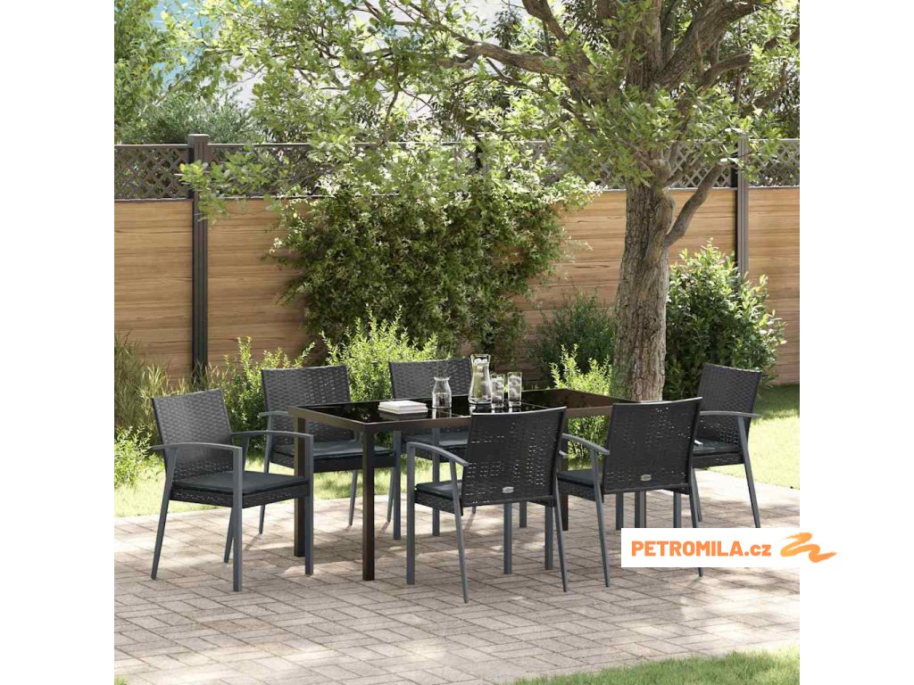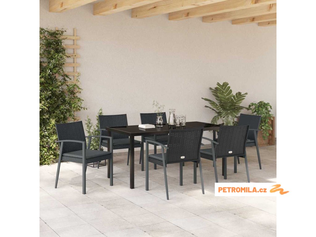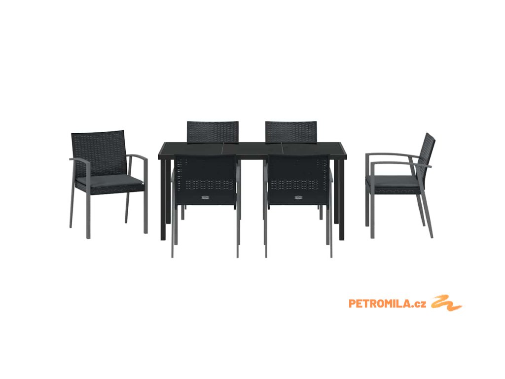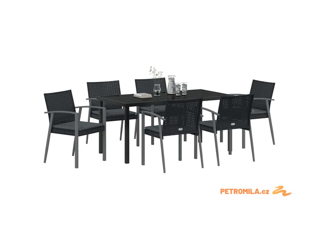Zahradní jídelní souprava 7 pcs Černá Poly ratan