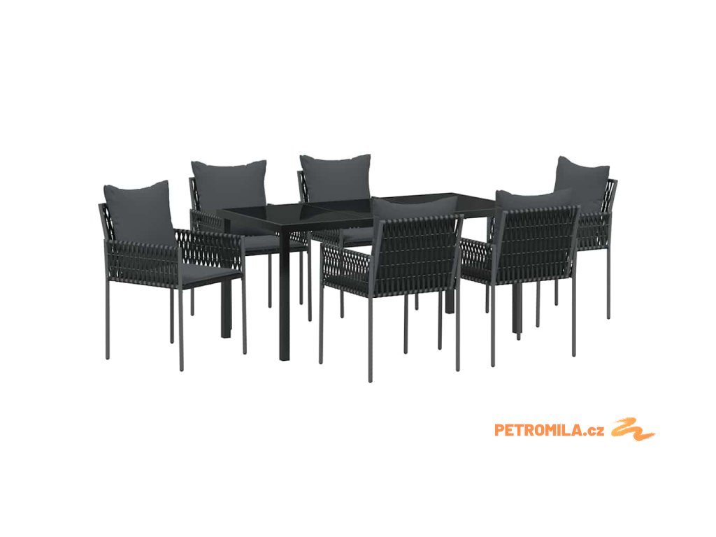 Zahradní jídelní souprava 7 pcs Černá Poly ratan