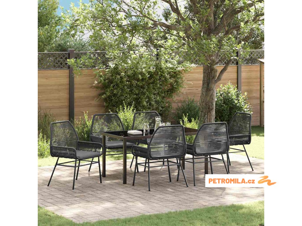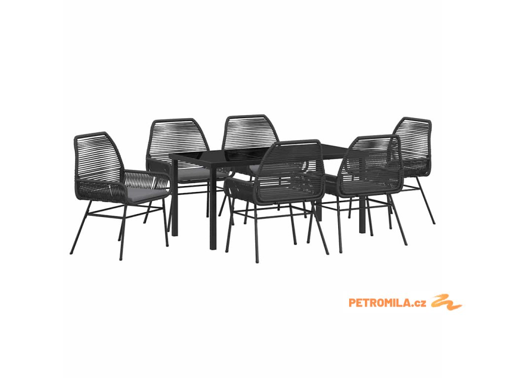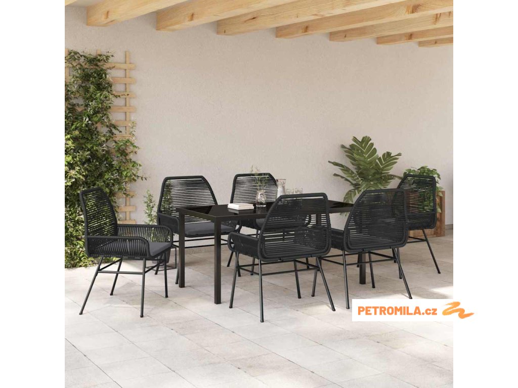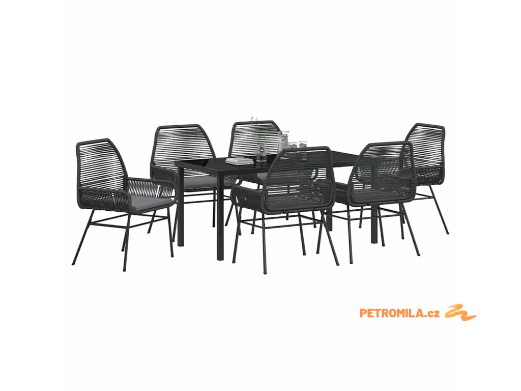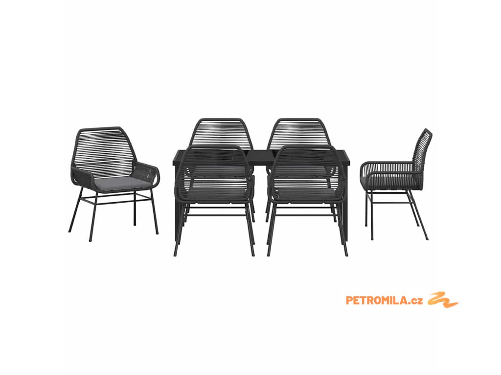 Zahradní jídelní souprava 7 pcs Černá polyratan