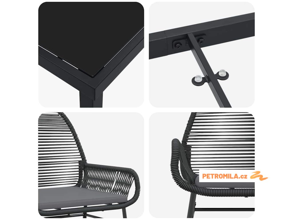 - Kvalitní materiály: Tato jídelní souprava je hlavně z odolného poly ratanu, který skvěle zvládá venkovní počasí a má dlouhou životnost. UV ochrana v poly ratanu zabraňuje blednutí, zatímco ocelový rám zajišťuje solidní podporu, takže bude vypadat skvěle bez ohledu na počasí.
