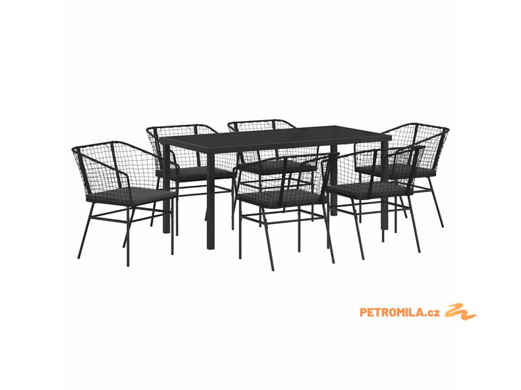 Zahradní jídelní souprava 7 pcs Černá polyratan