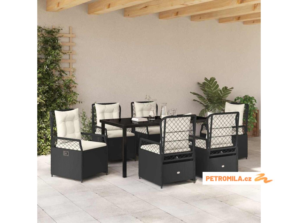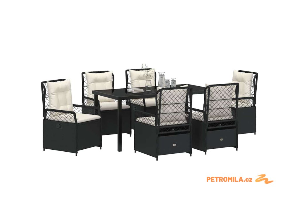 Zahradní jídelní souprava 7 pcs Černá polyratan