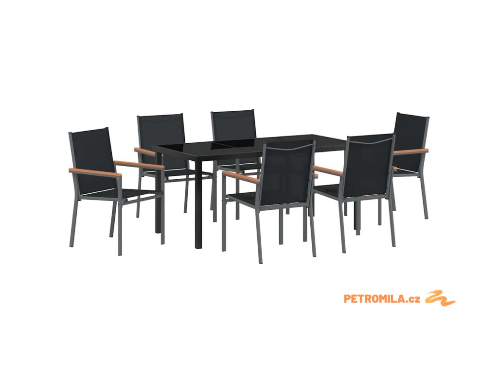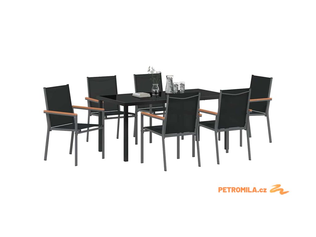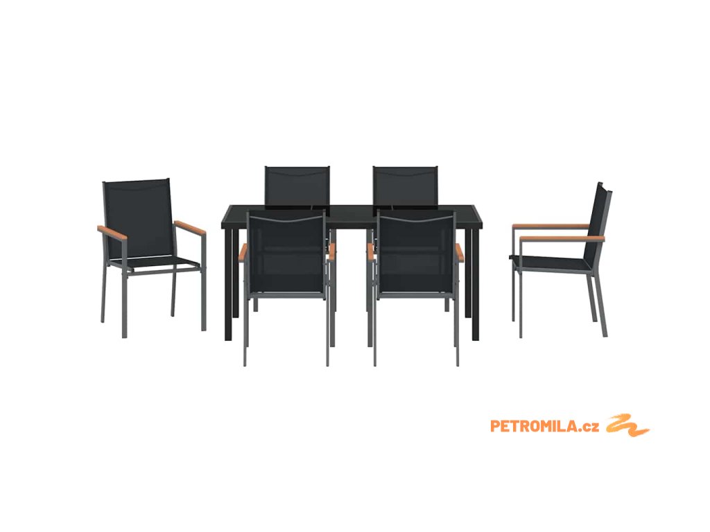 Zahradní jídelní souprava 7 pcs Černá Textilene a ocel