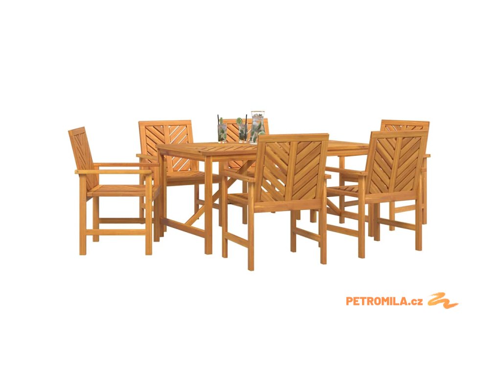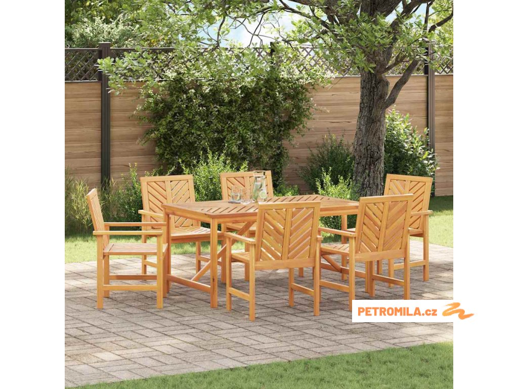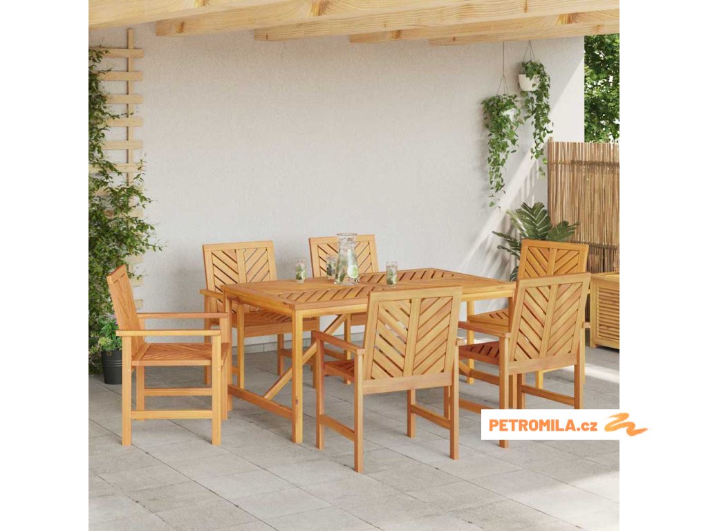 - Materiály: Tato jídelní souprava je celá z masivního akáciového dřeva, které dodává příjemný a teplý vzhled, doplněný krásnou přírodní texturou. Dřevěný materiál byl zvolen pro svou pevnost a vizuální atraktivitu, takže se skvěle hodí do každého zahradního prostoru.