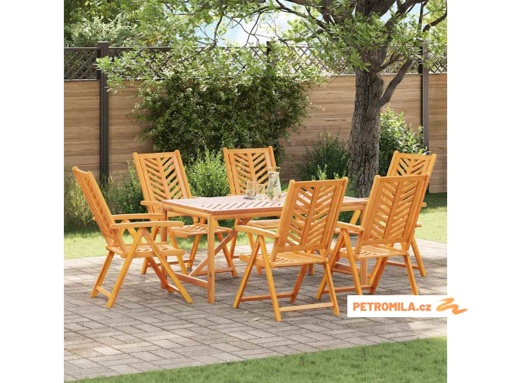 - Součásti Jídelní sada obsahuje příjemně tvarovaná opěradla, ergonomické opěrky, robustní nohy a hladký povrch, což vytváří jednotný vzhled. Každý prvek je pečlivě sladěn do bohatého hnědého odstínu pro moderní estetiku a masivní akáciové dřevo zaručuje sílu a stabilitu pro maximální pohodlí při venkovních jídlech.