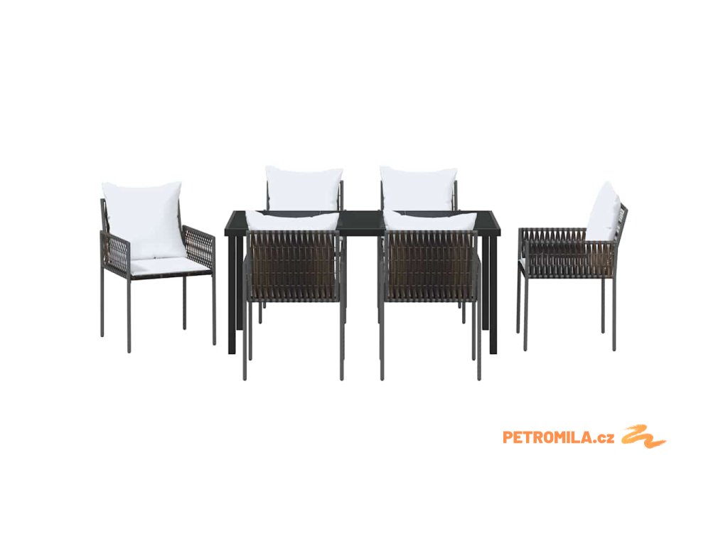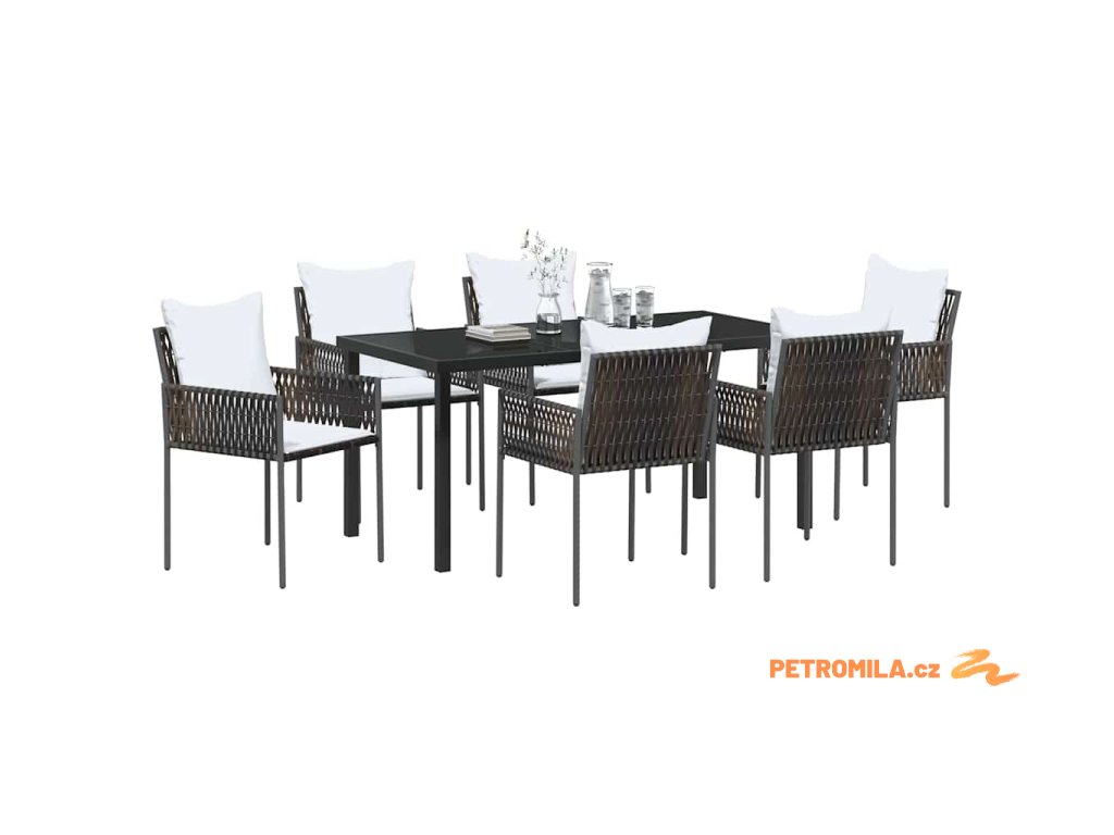 Sada zahradních pohovek s polštářem 7 pcs Hnědá Poly ratan