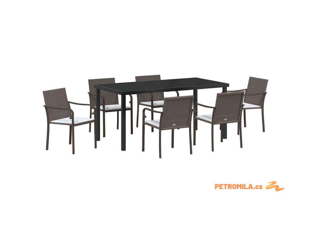 Zahradní jídelní souprava 7 pcs Hnědá Poly ratan