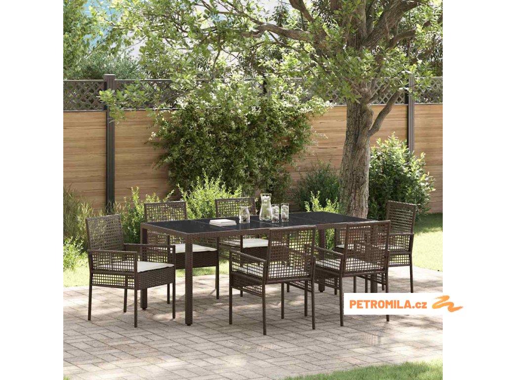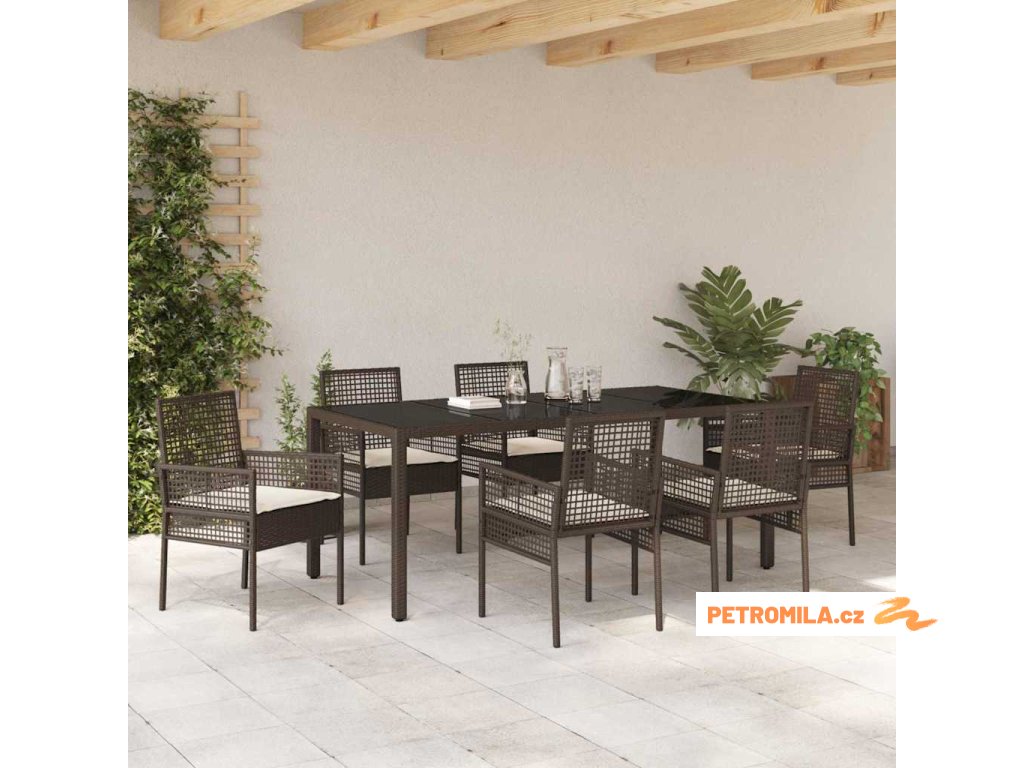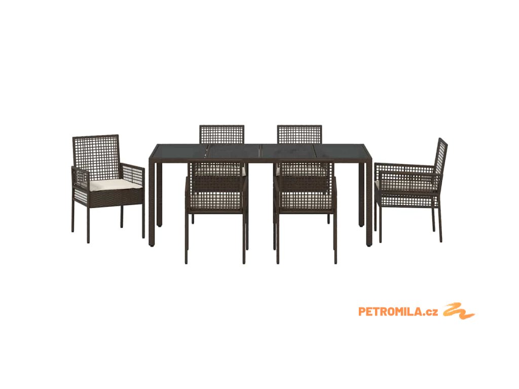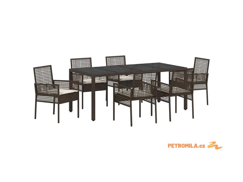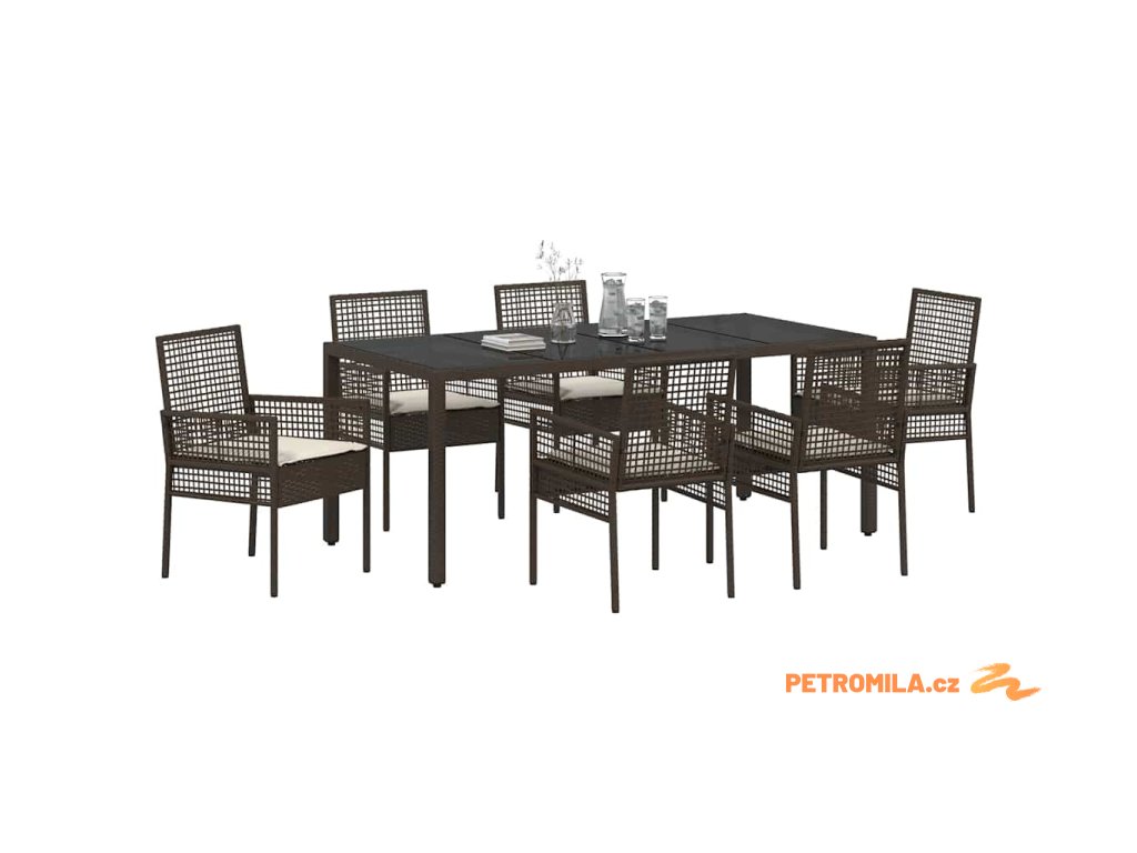 Zahradní jídelní souprava 7 pcs Hnědá Poly ratan